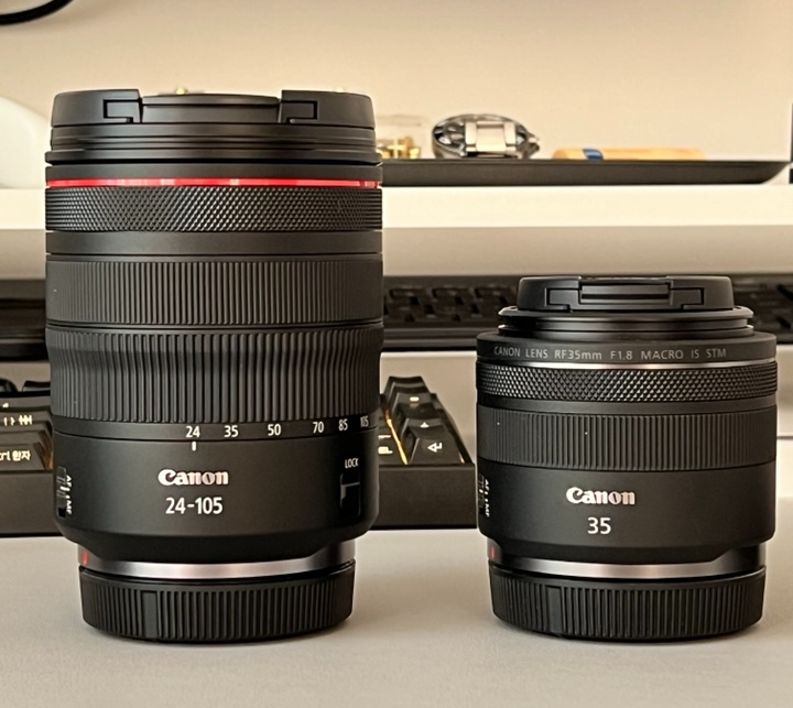 기존에 있던 RF35mm f1.8의 단렌즈와 이번에 장만한 줌렌즈 장착샷 비교입니다.